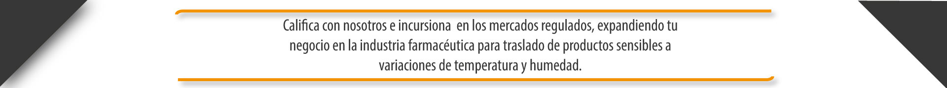 Somos la evidencia documentada- que tus procesos y equipos necesitan. Califica con nosotros e incursiona en los mercados regulados, expandiendo tu negocio en la industria farmacéutica para traslado de productos sensibles a variaciones de temperatura y humedad.
